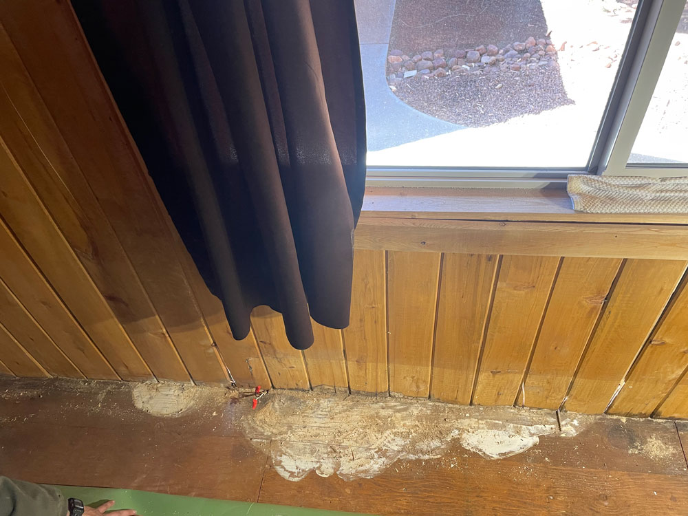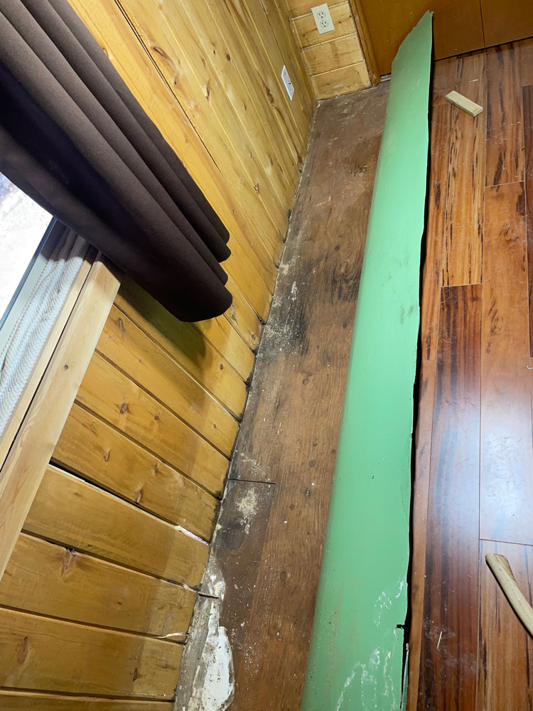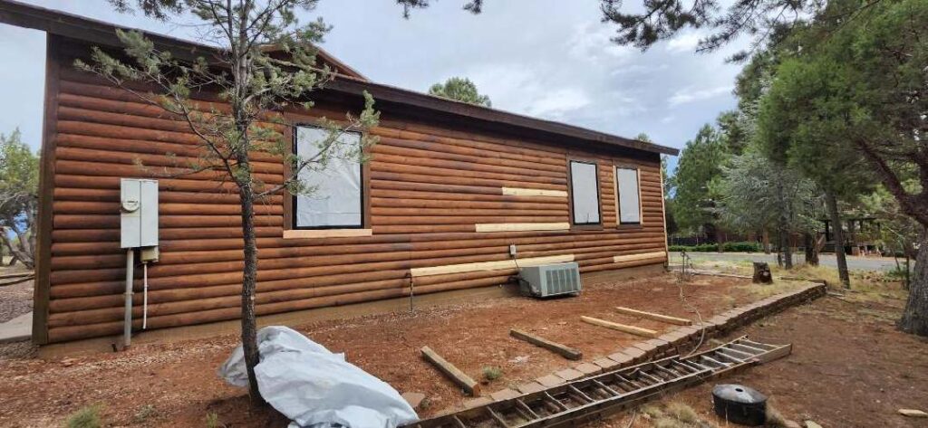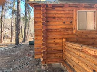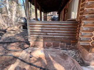 This house had mold and rotting logs; someone had used Bondo on this home. It was in very bad shape.