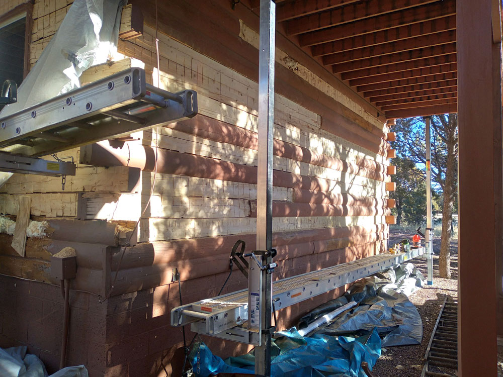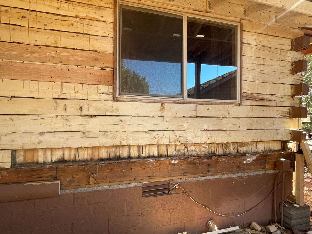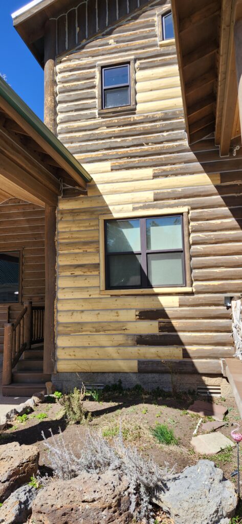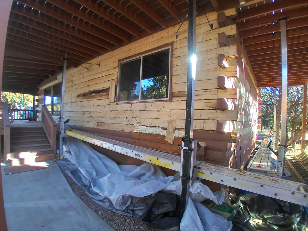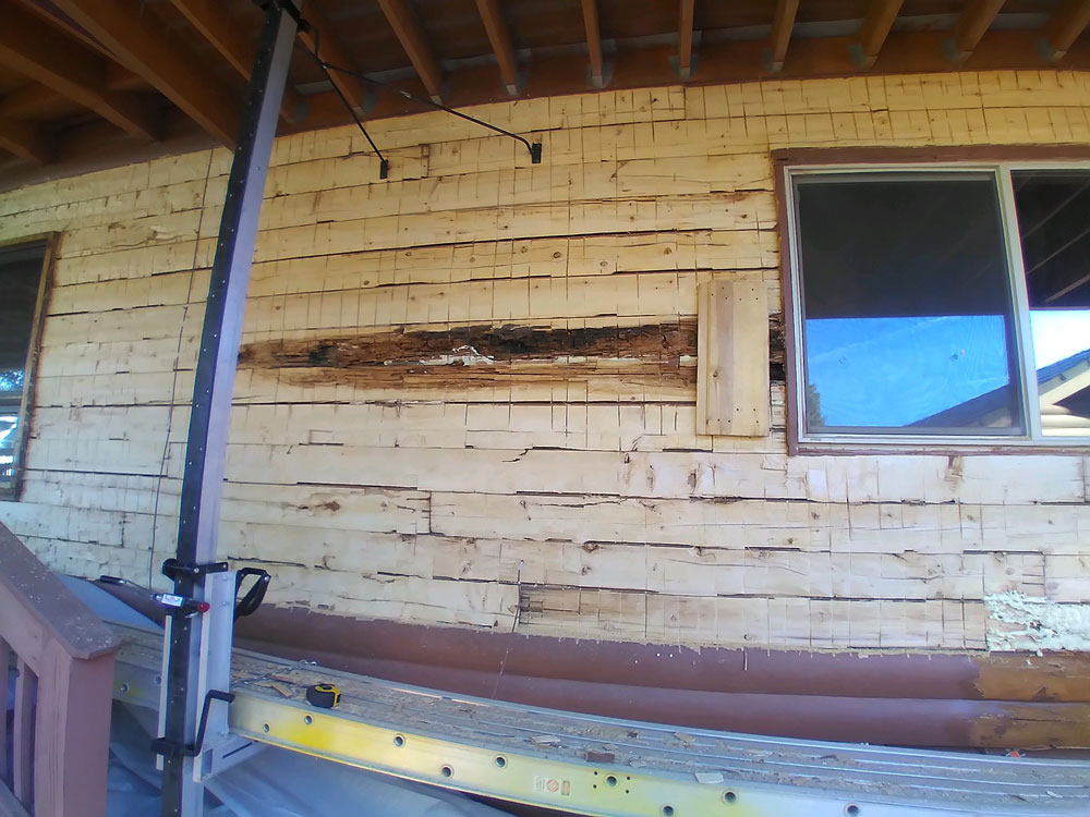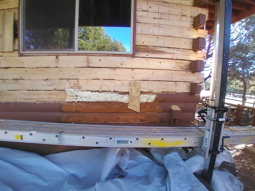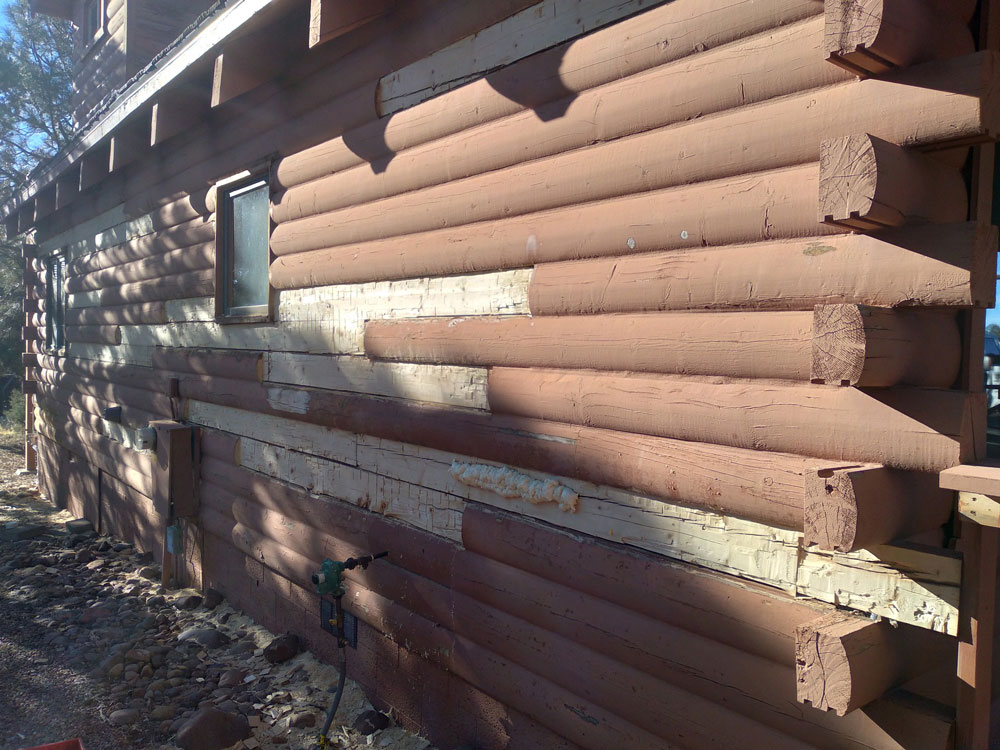 Once all the bad wood is removed we reface the logs.