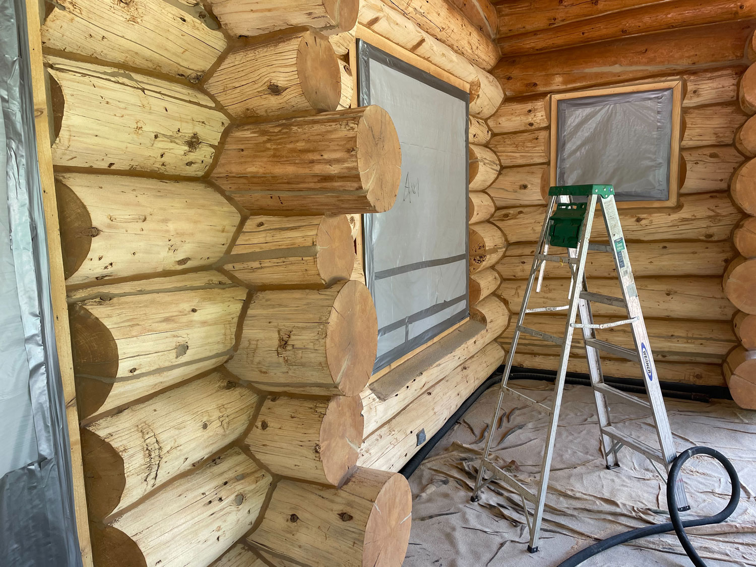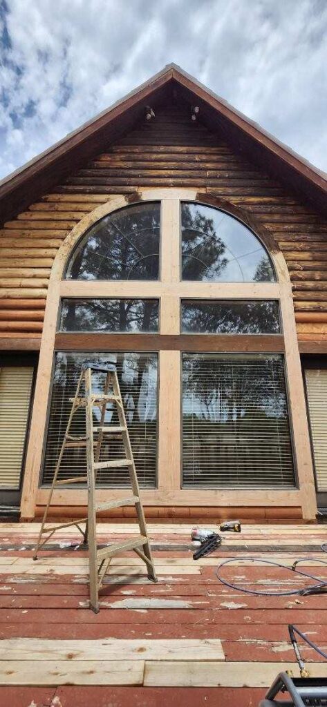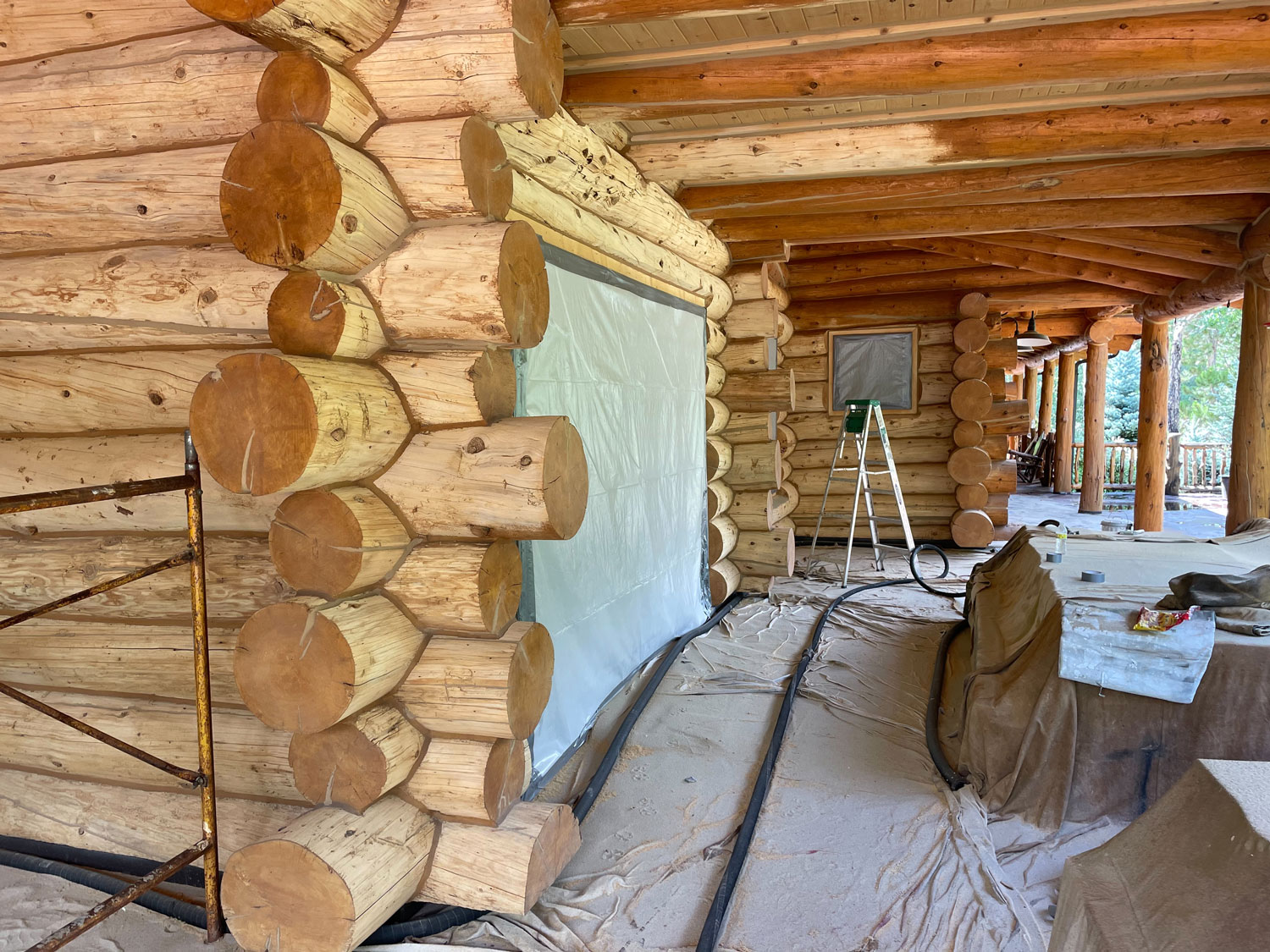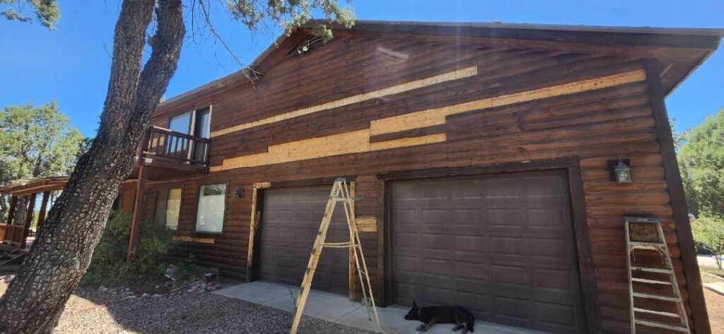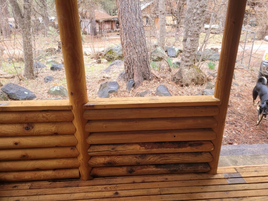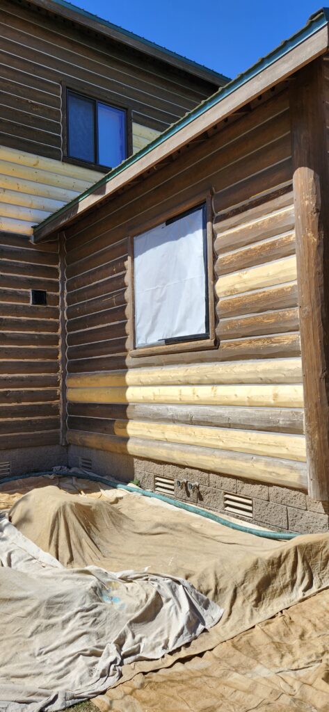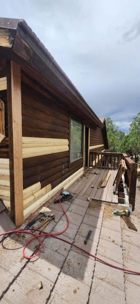 Once all the bad wood is removed we reface the logs.