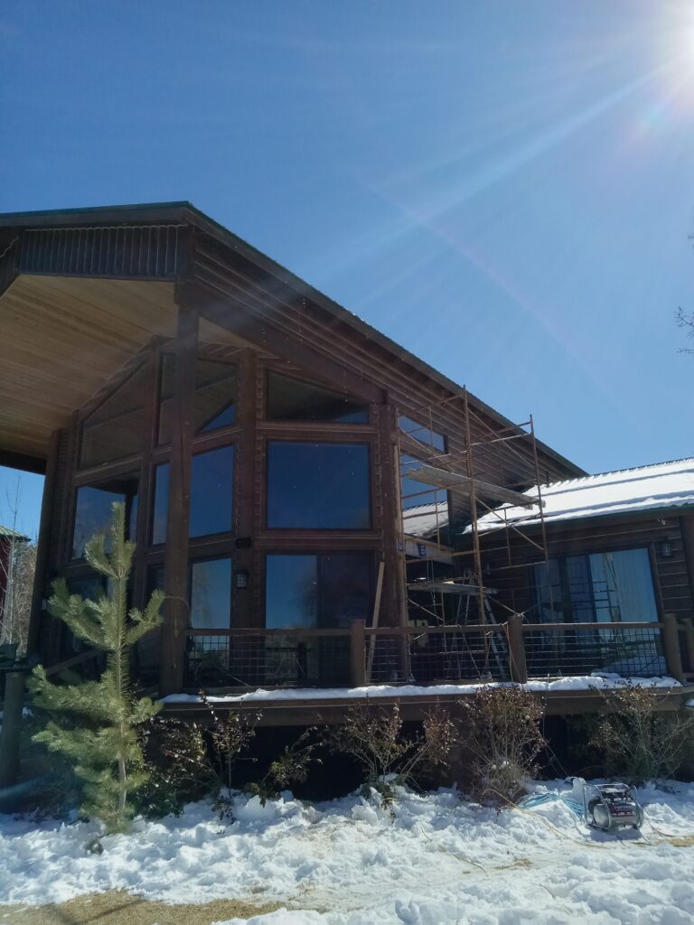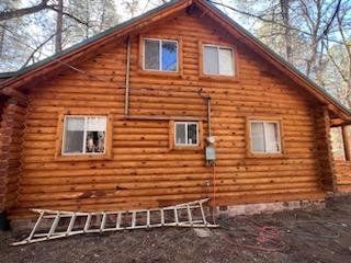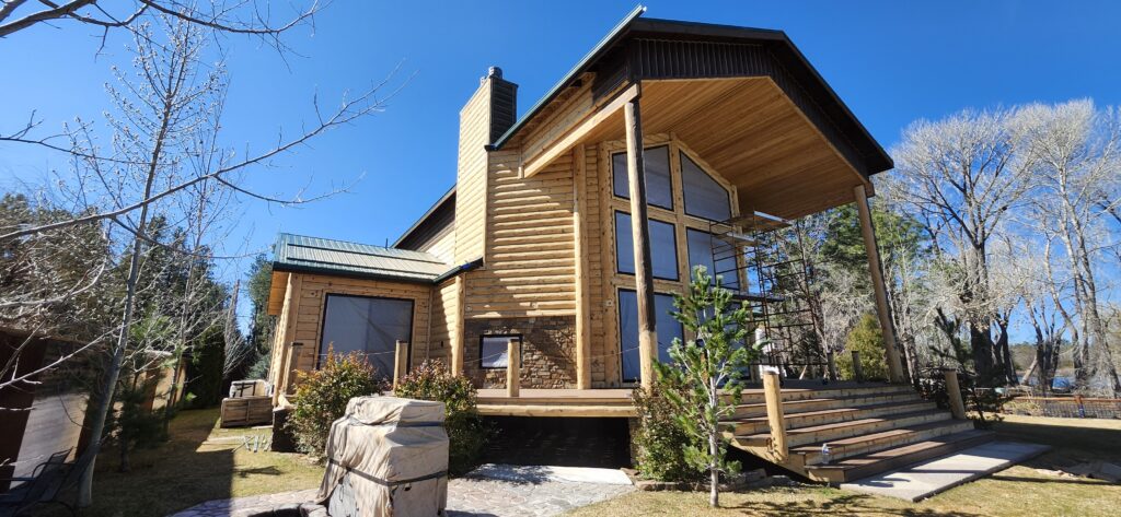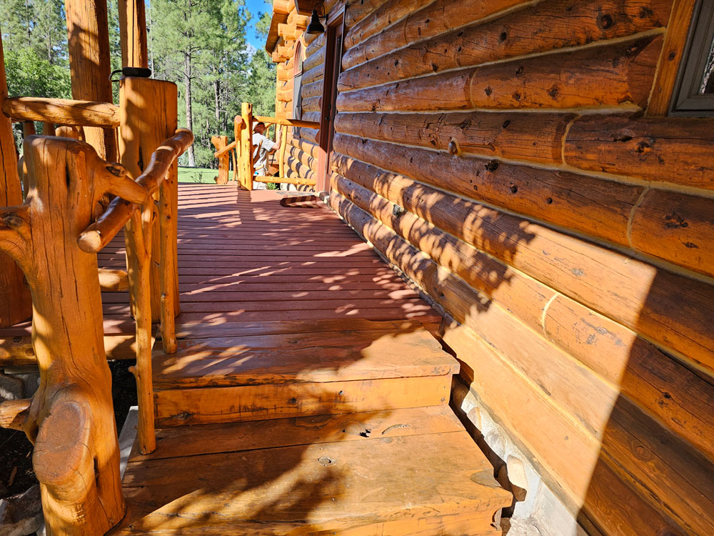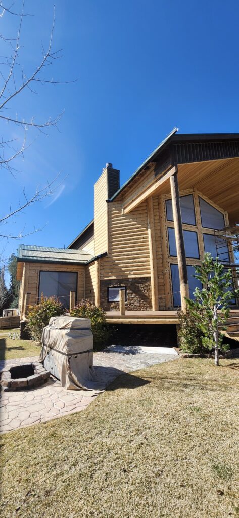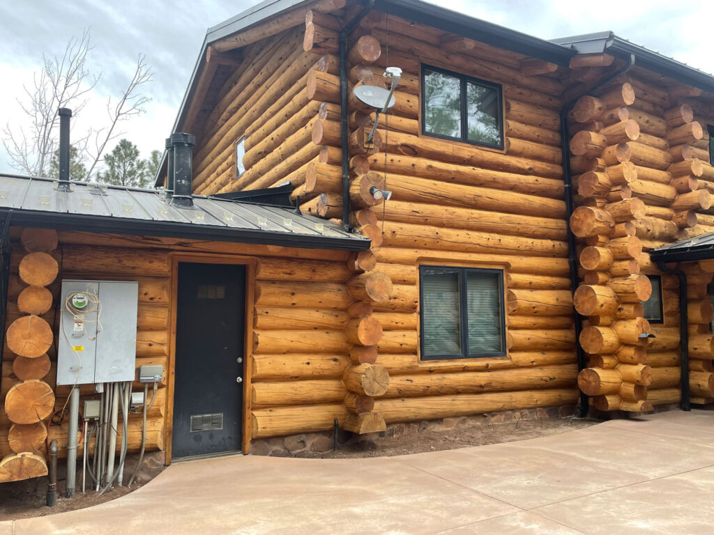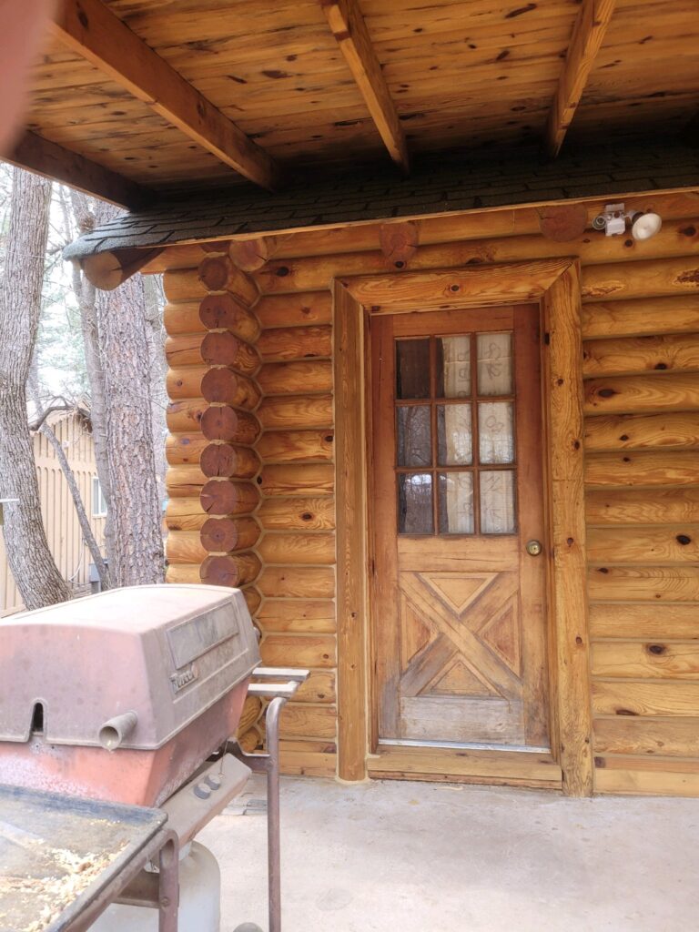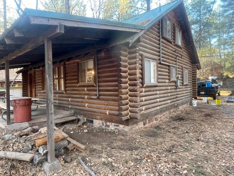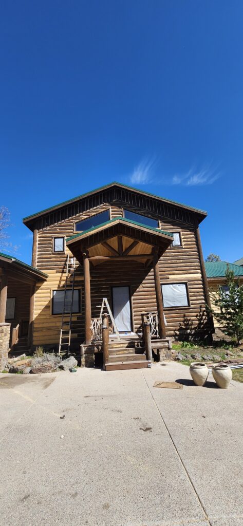 A lot of love and labor went into this home and the guest home. Below you will see all the work done from chinking, carpentry, sandblasting etc.