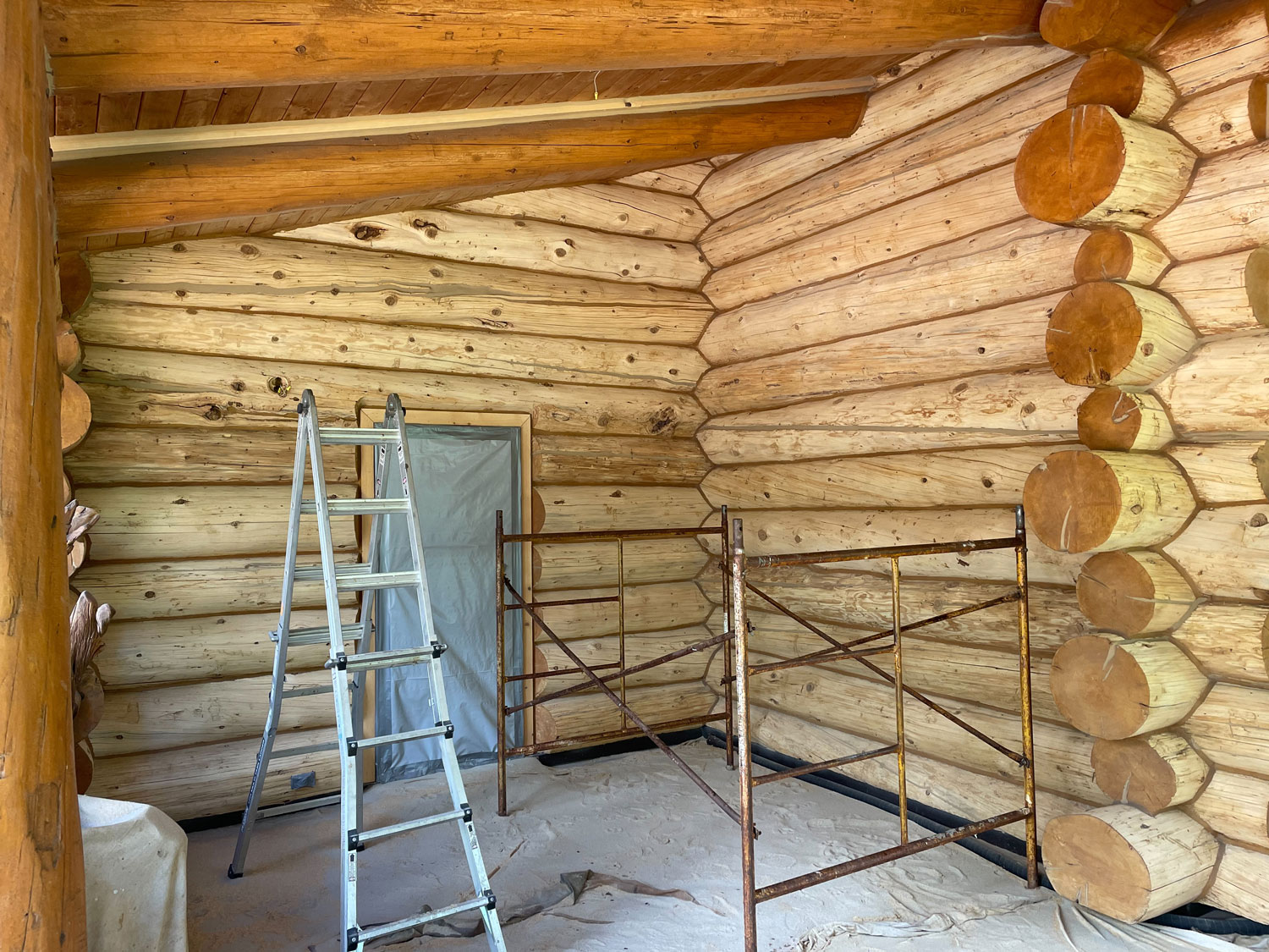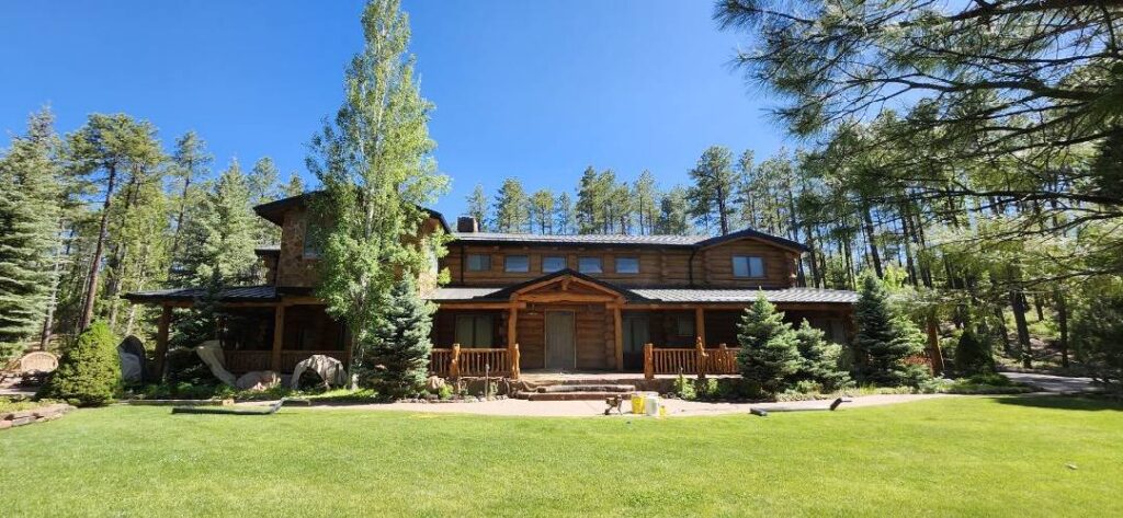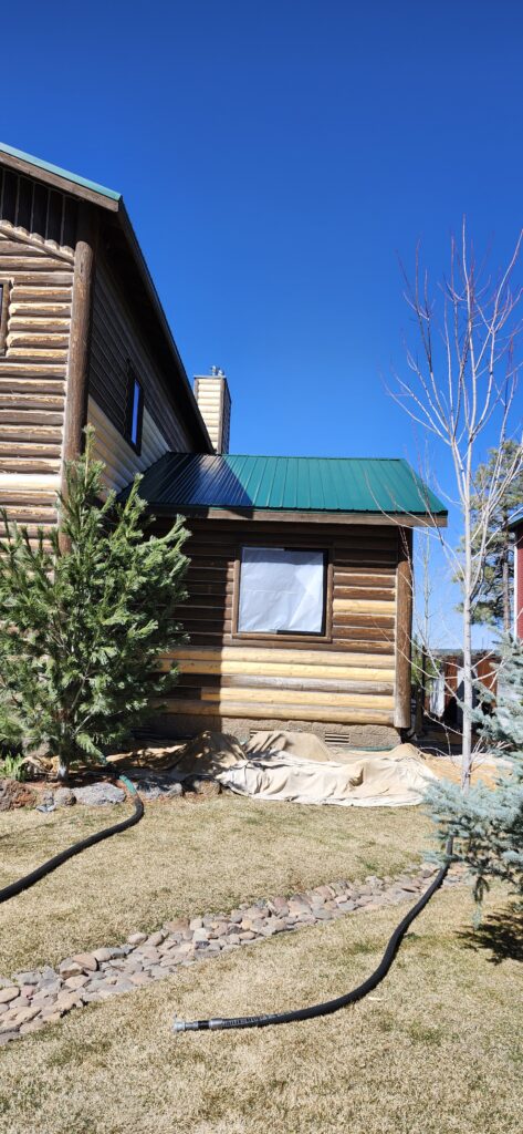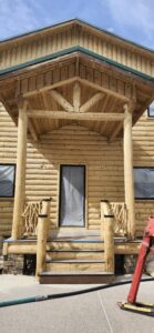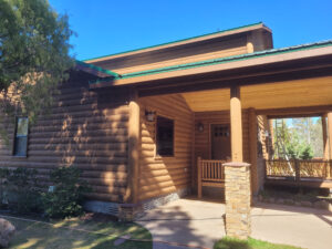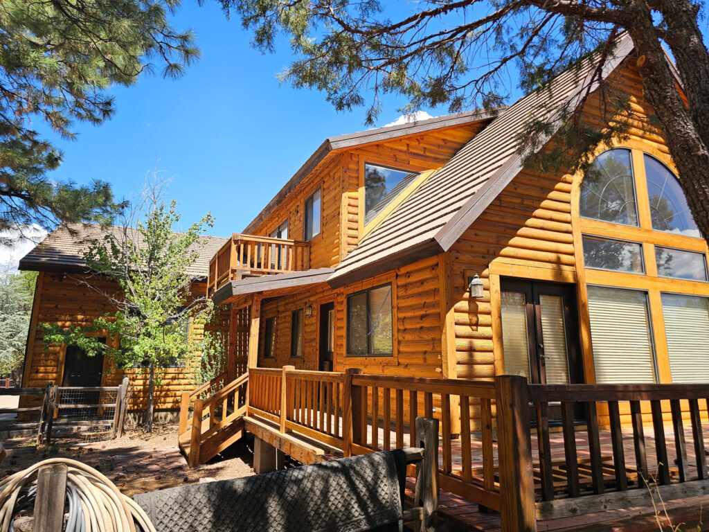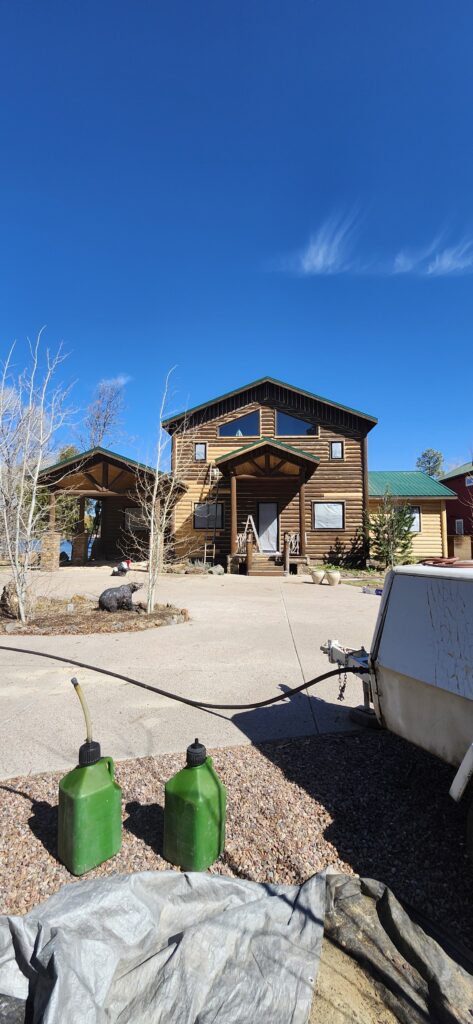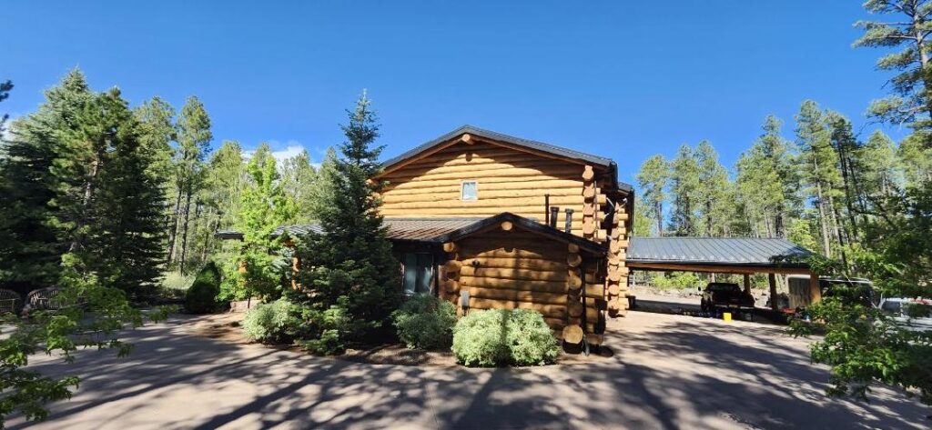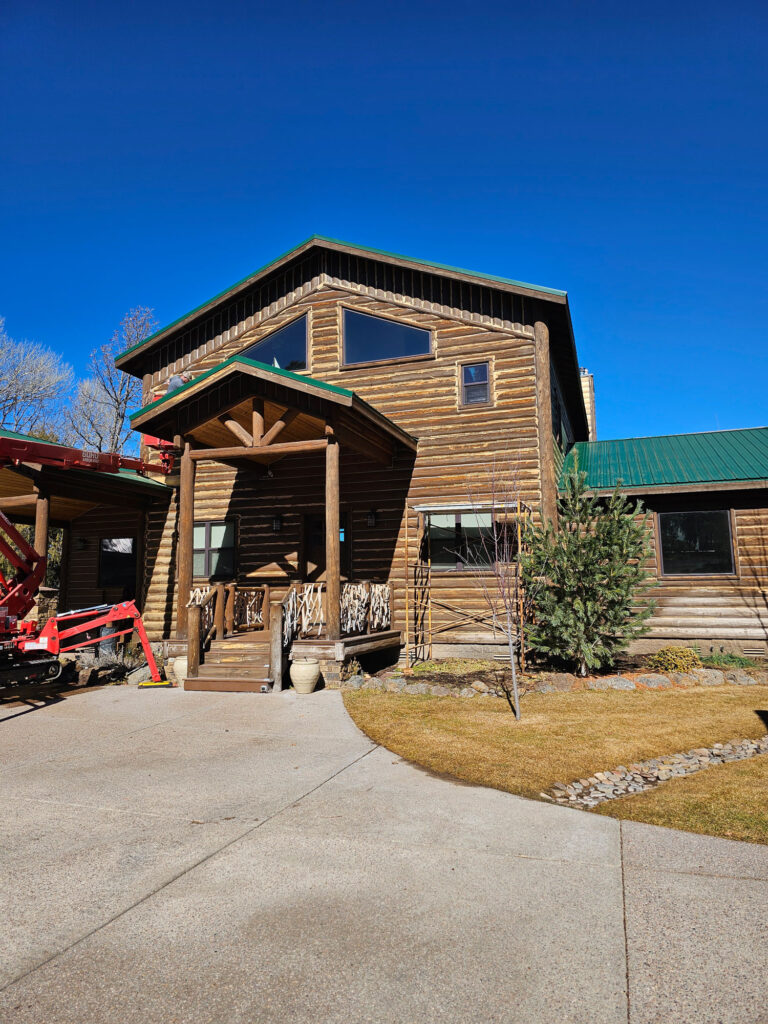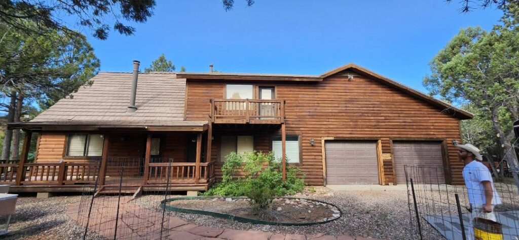 A lot of love and labor went into this home and the guest home. Below you will see all the work done from chinking, carpentry, sandblasting etc.