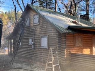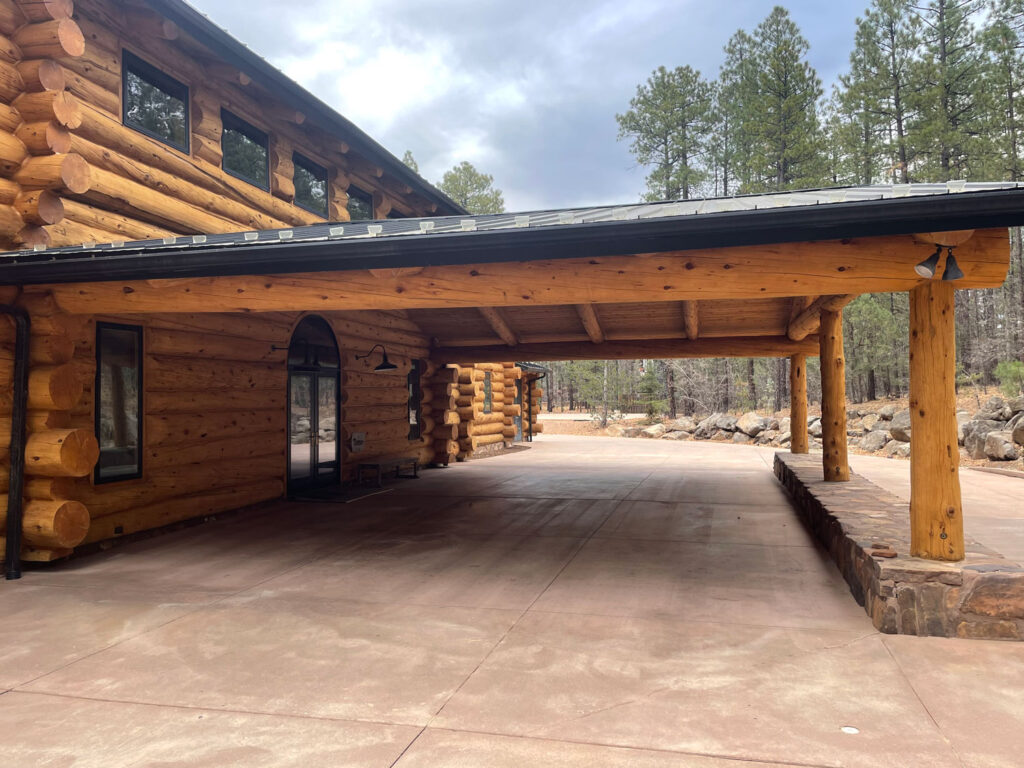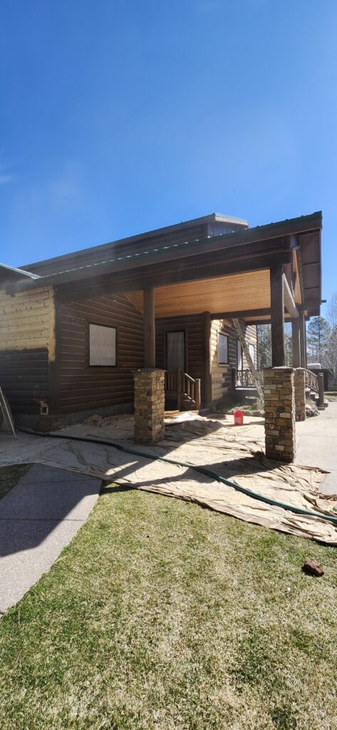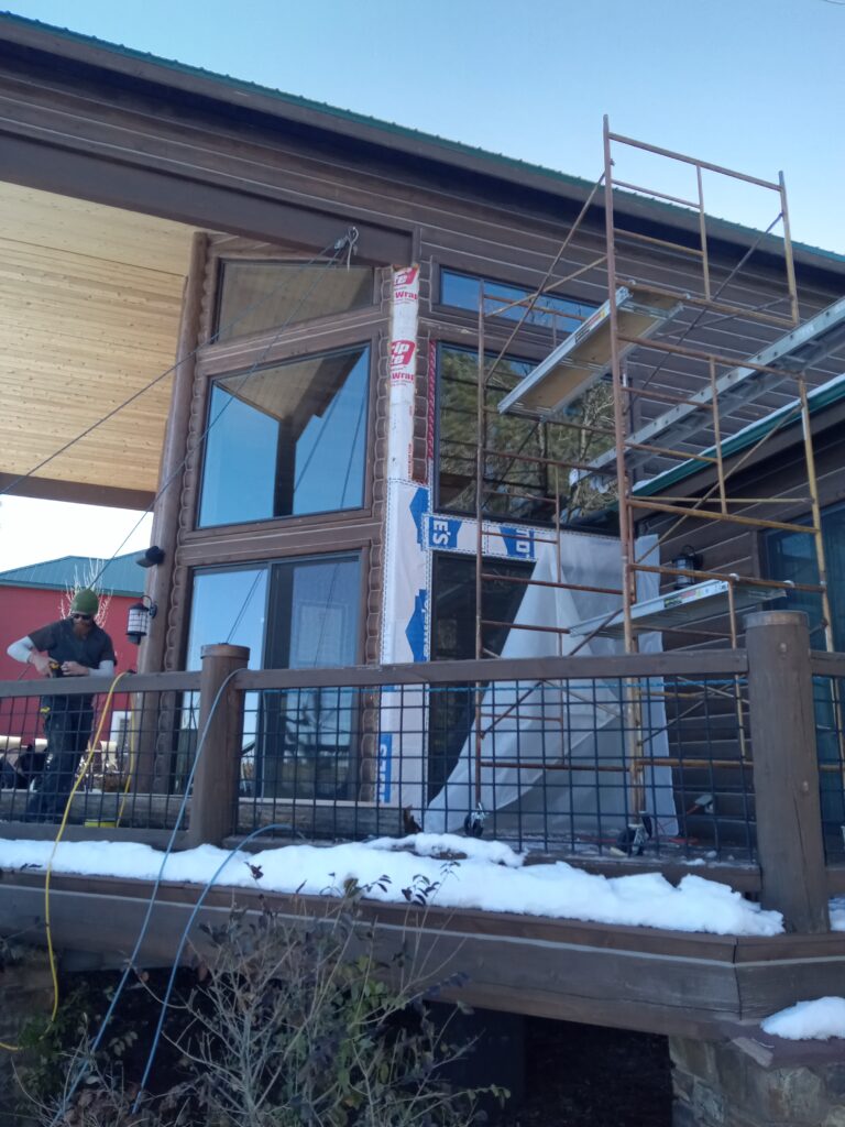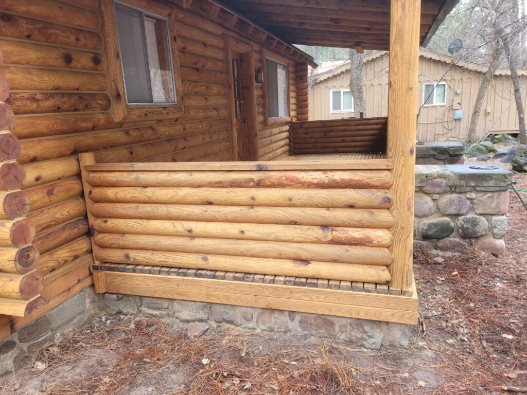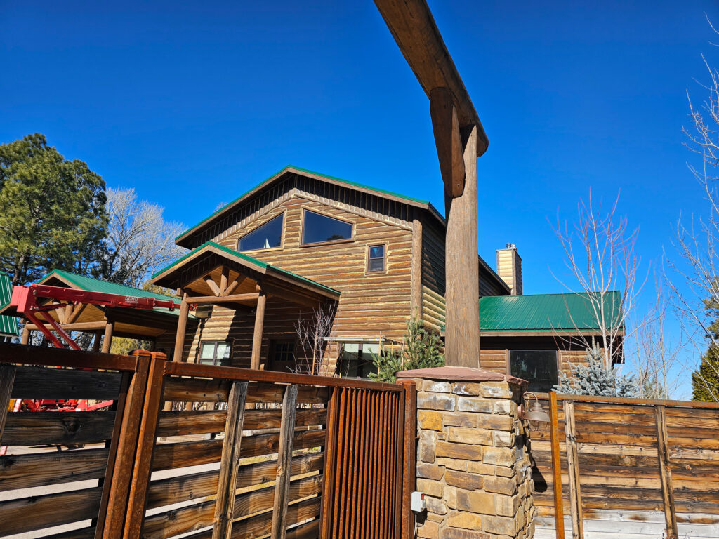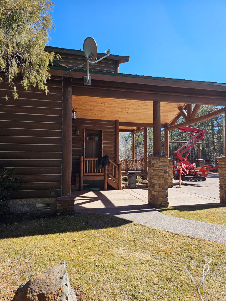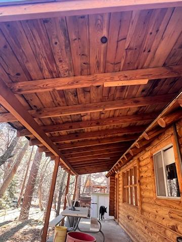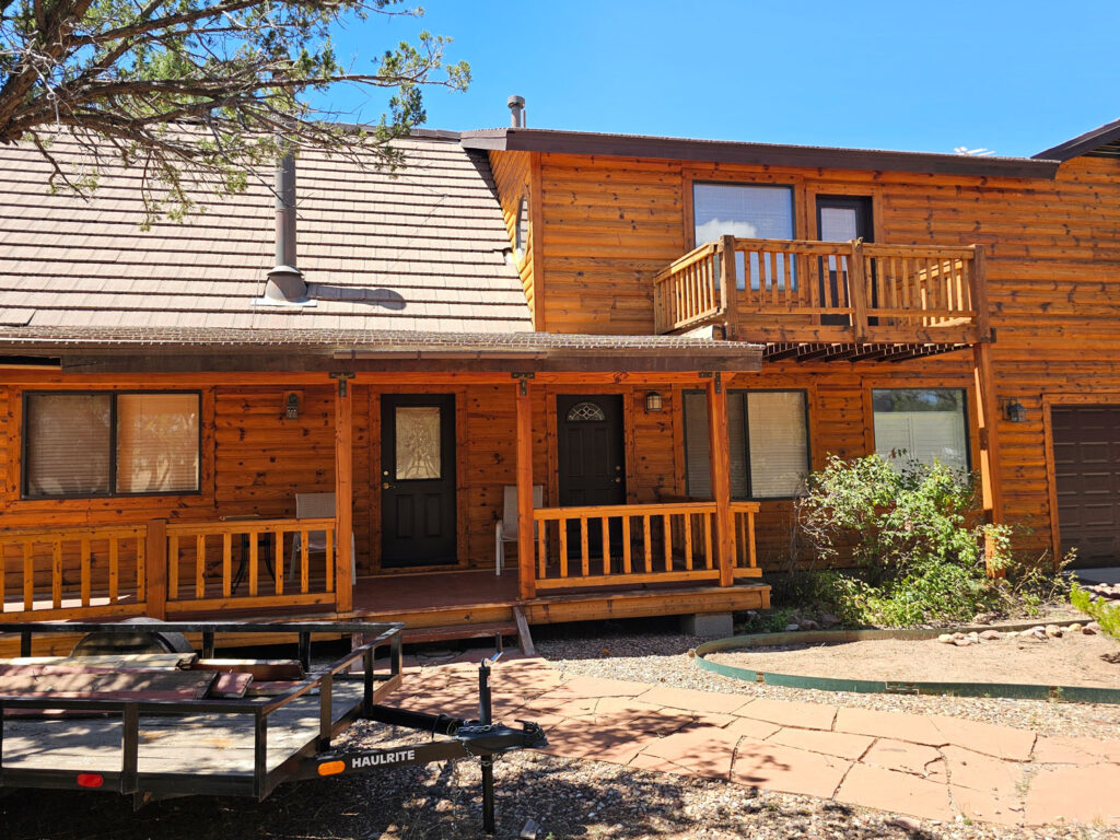 A lot of love and labor went into this home and the guest home. Below you will see all the work done from chinking, carpentry, sandblasting etc.