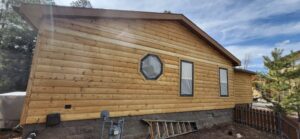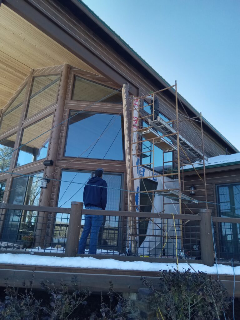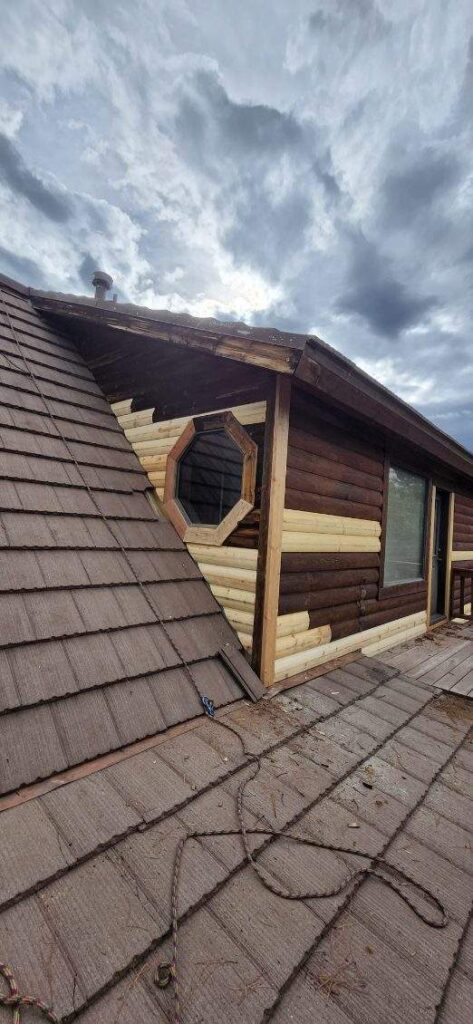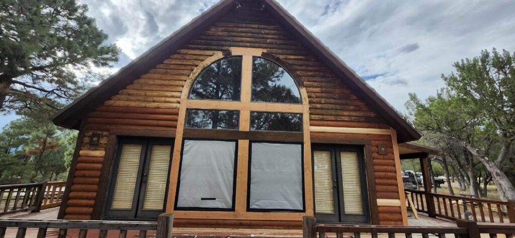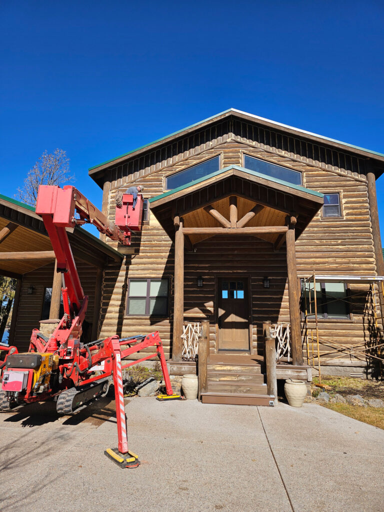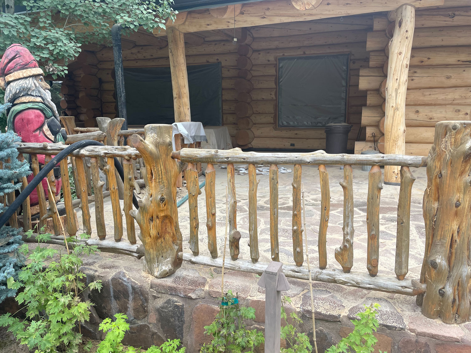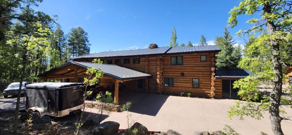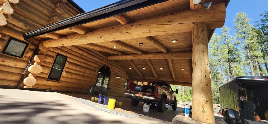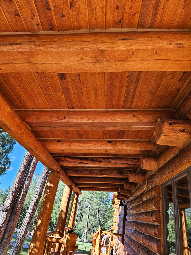 A lot of love and labor went into this home and the guest home. Below you will see all the work done from chinking, carpentry, sandblasting etc.